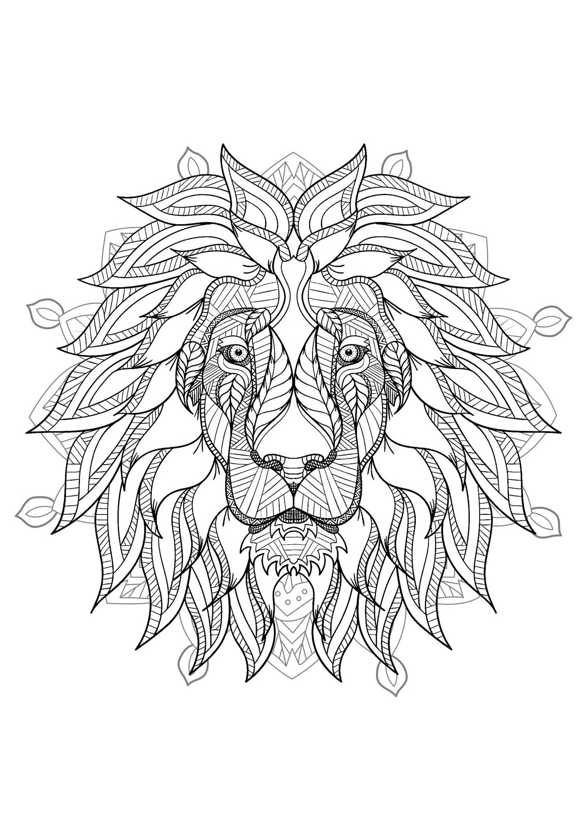 Mandala con testa di leone - 2 (Tema Mandala : Animali)